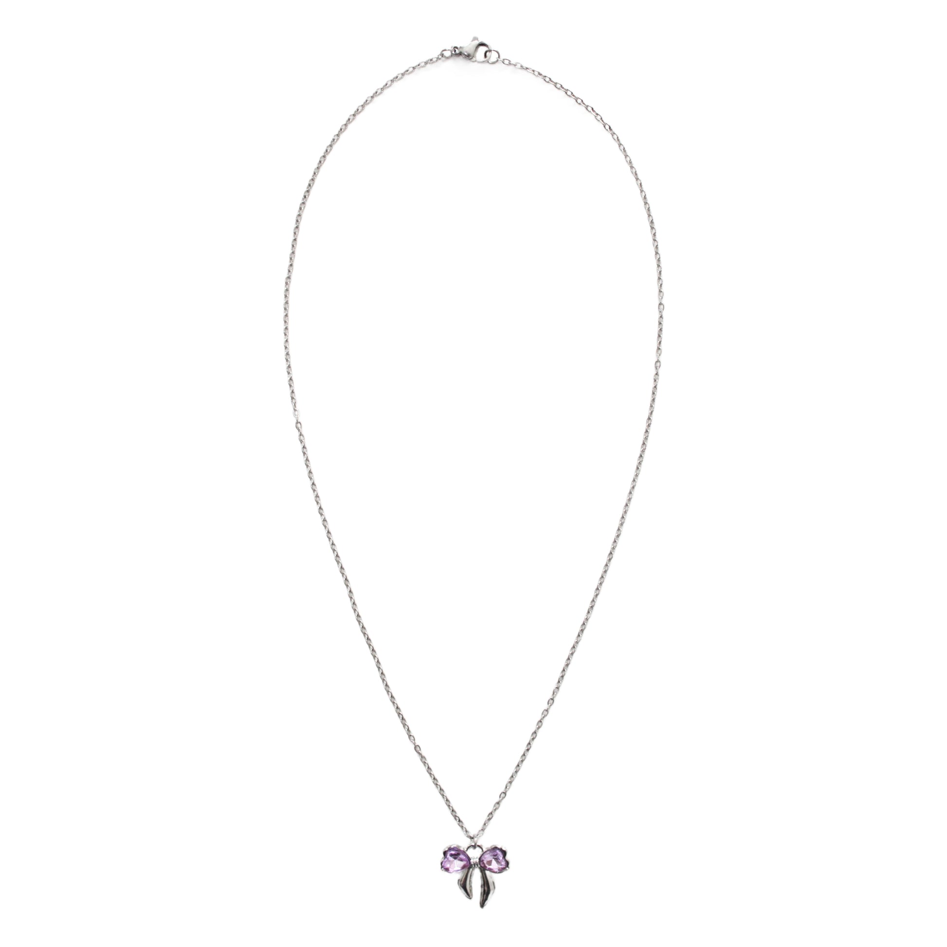 A delicate bow sparkles with purple gems, soft and charming for any occasion.